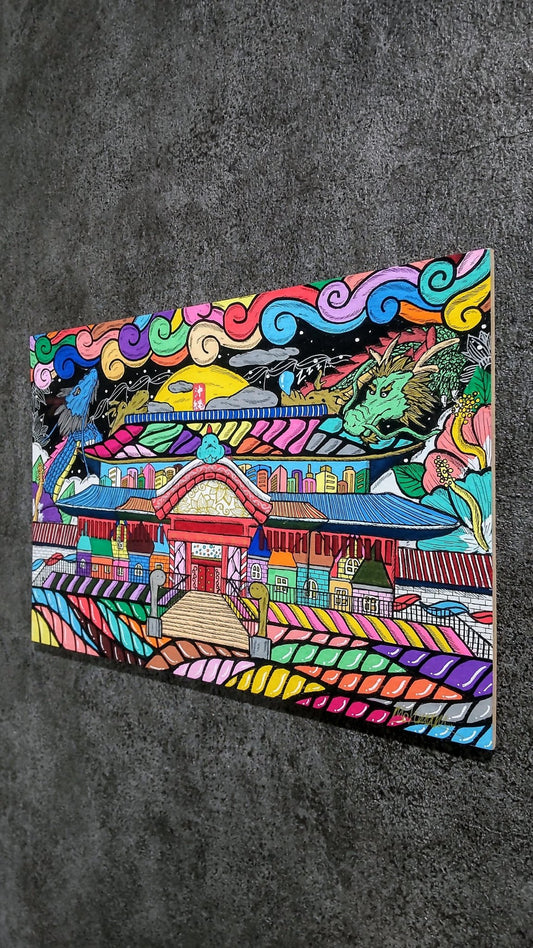 【額付アート写真/A3ノビ】GREEN AND ORANGE BAMBOO FOREST(緑とオレンジの竹林)