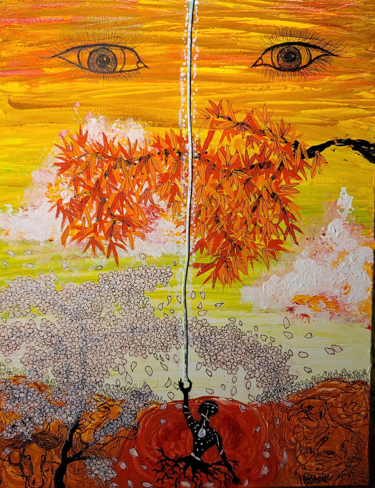 【額付アート写真/A3ノビ】GREEN AND ORANGE BAMBOO FOREST(緑とオレンジの竹林)