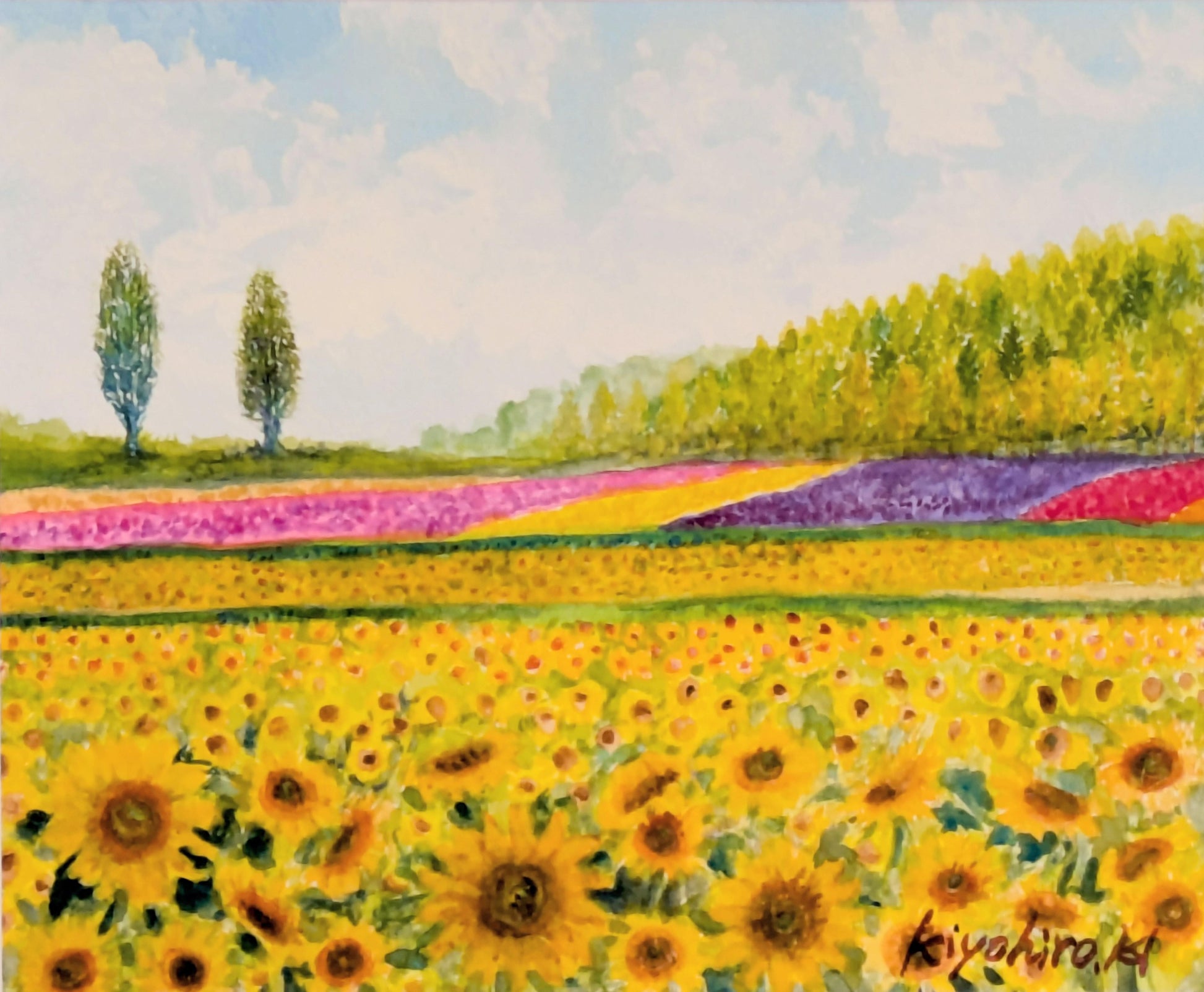 道内の色彩豊かな景勝地を私なりのイメージで絵として表現しています これは美瑛町辺りで見た風景の1枚です