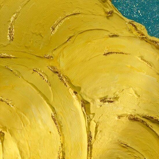 黄色とターコイズ色のエナジーアートIRONOE18センチ×18センチ
