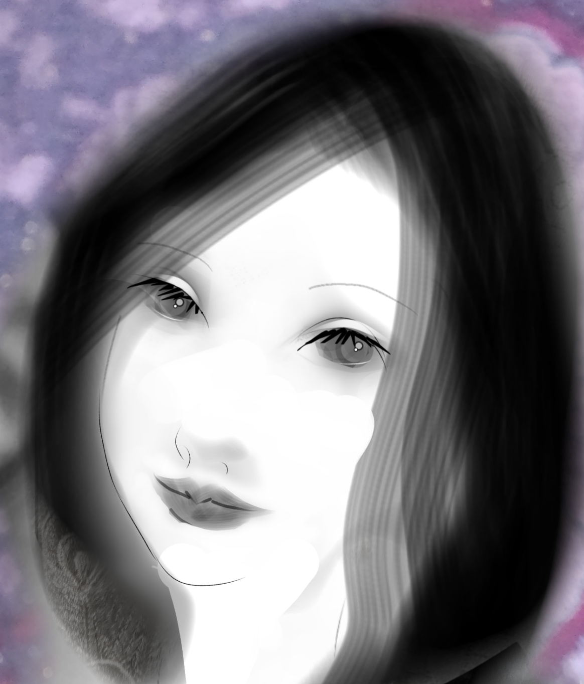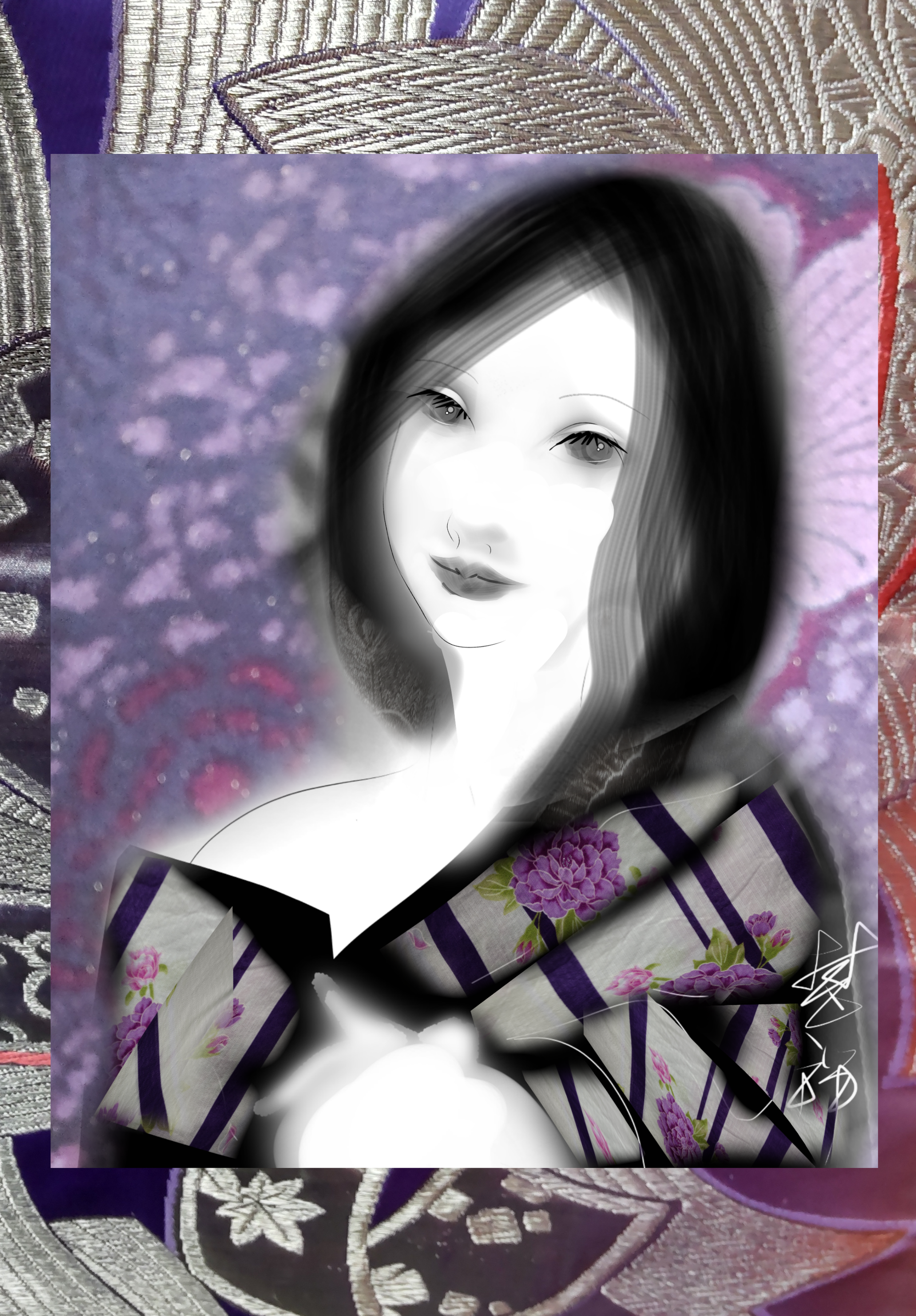 デジタルアートによる日本画制作。日本女性の豊かな表情とその仕草に 気品と心象をこめました。