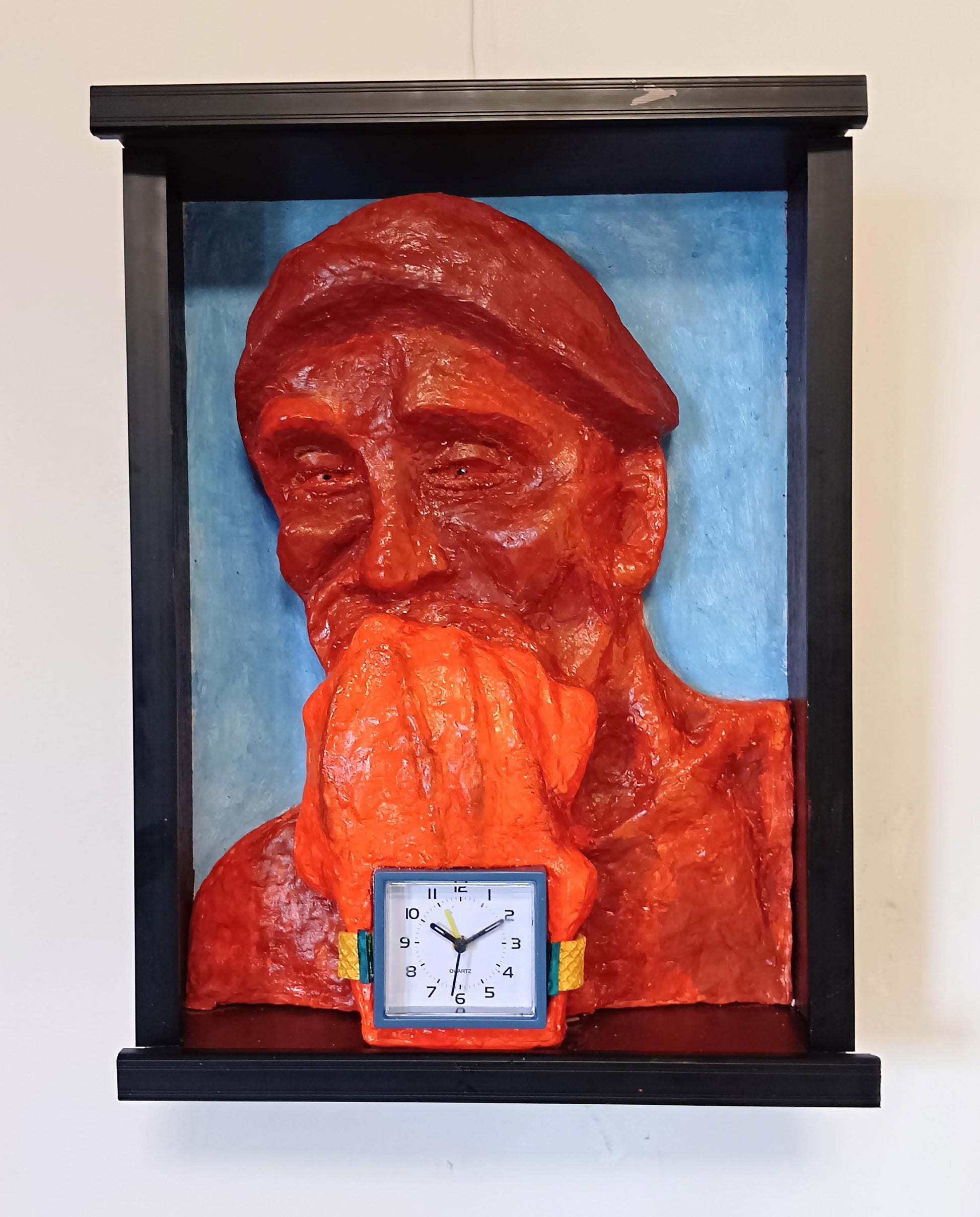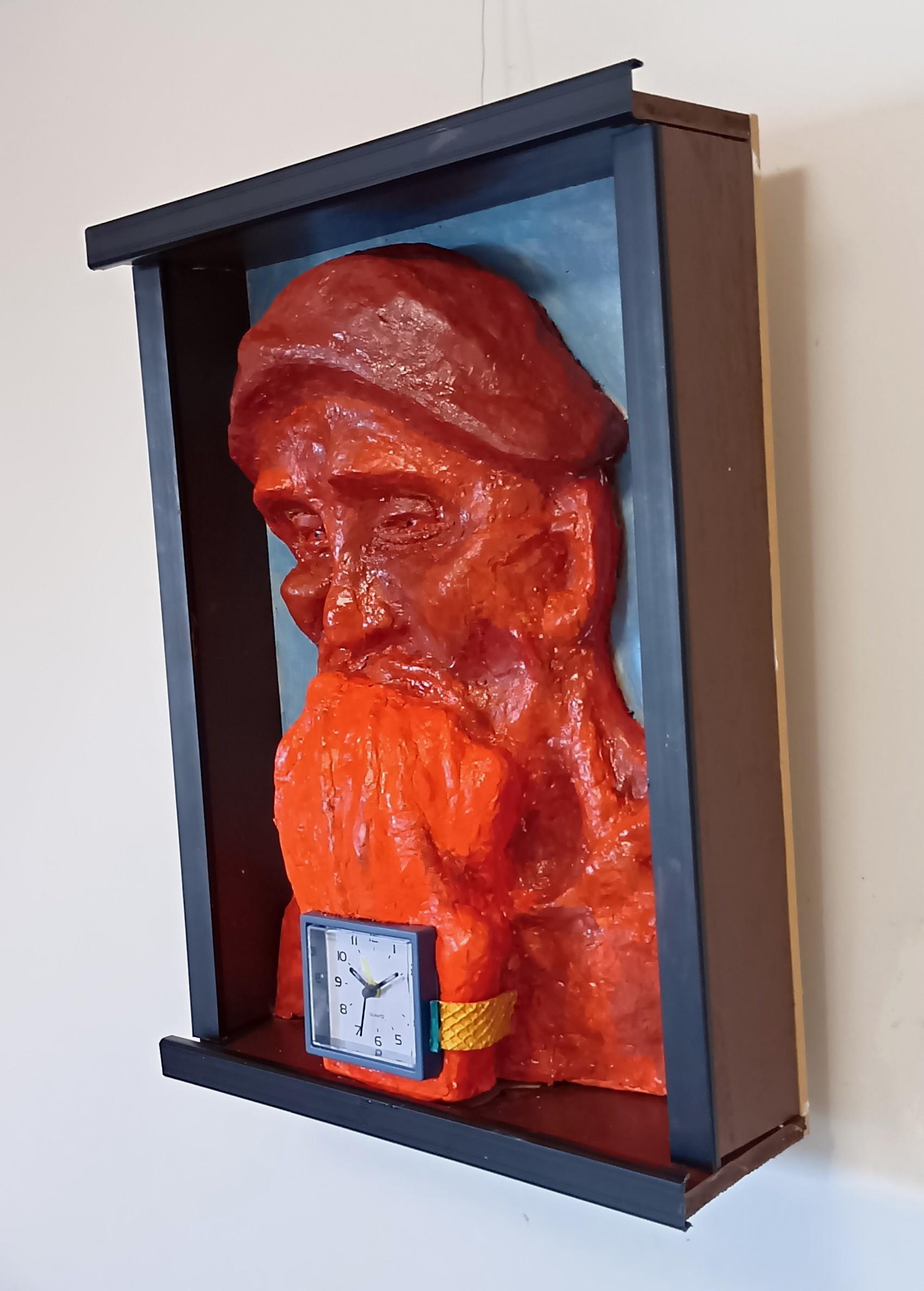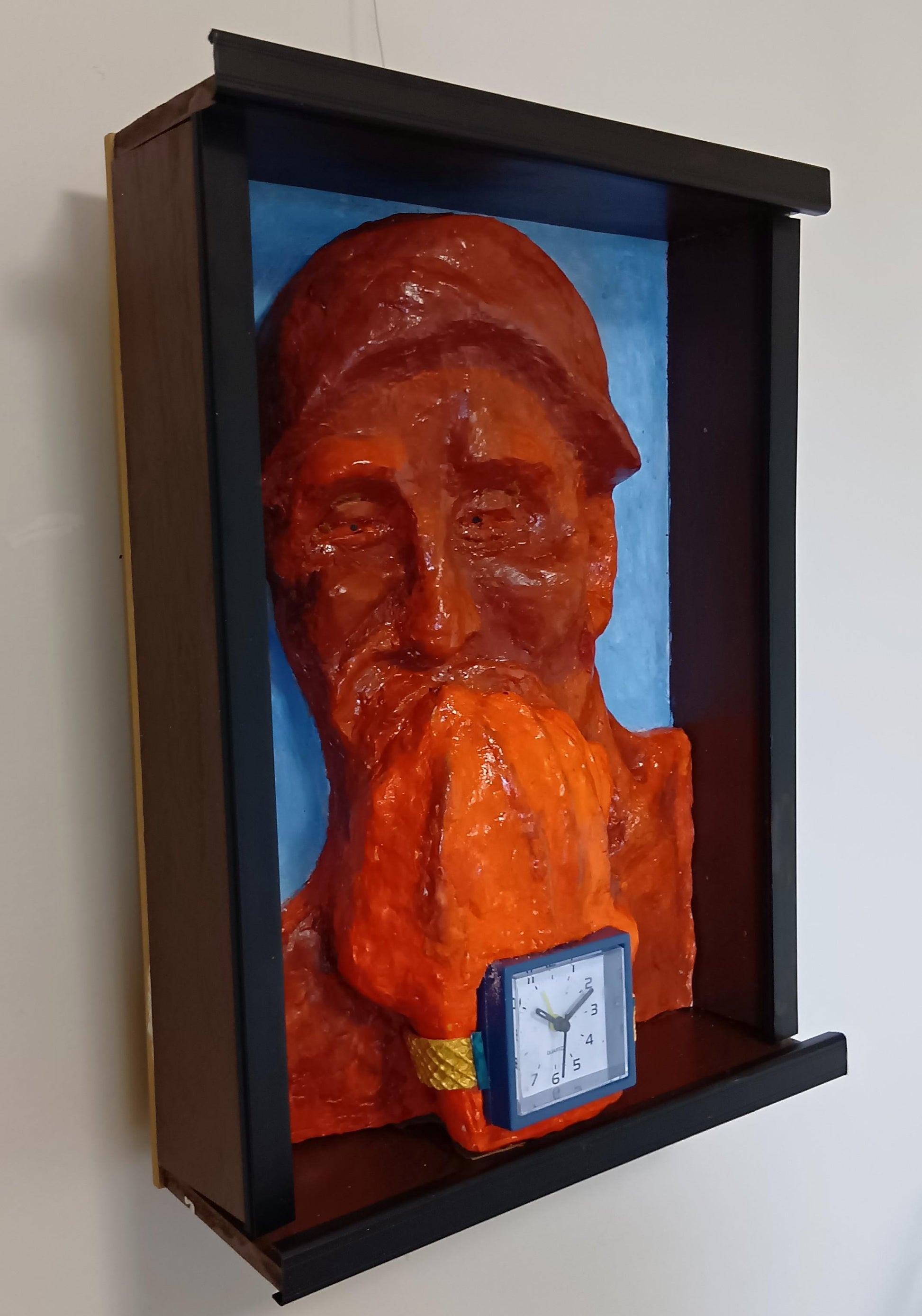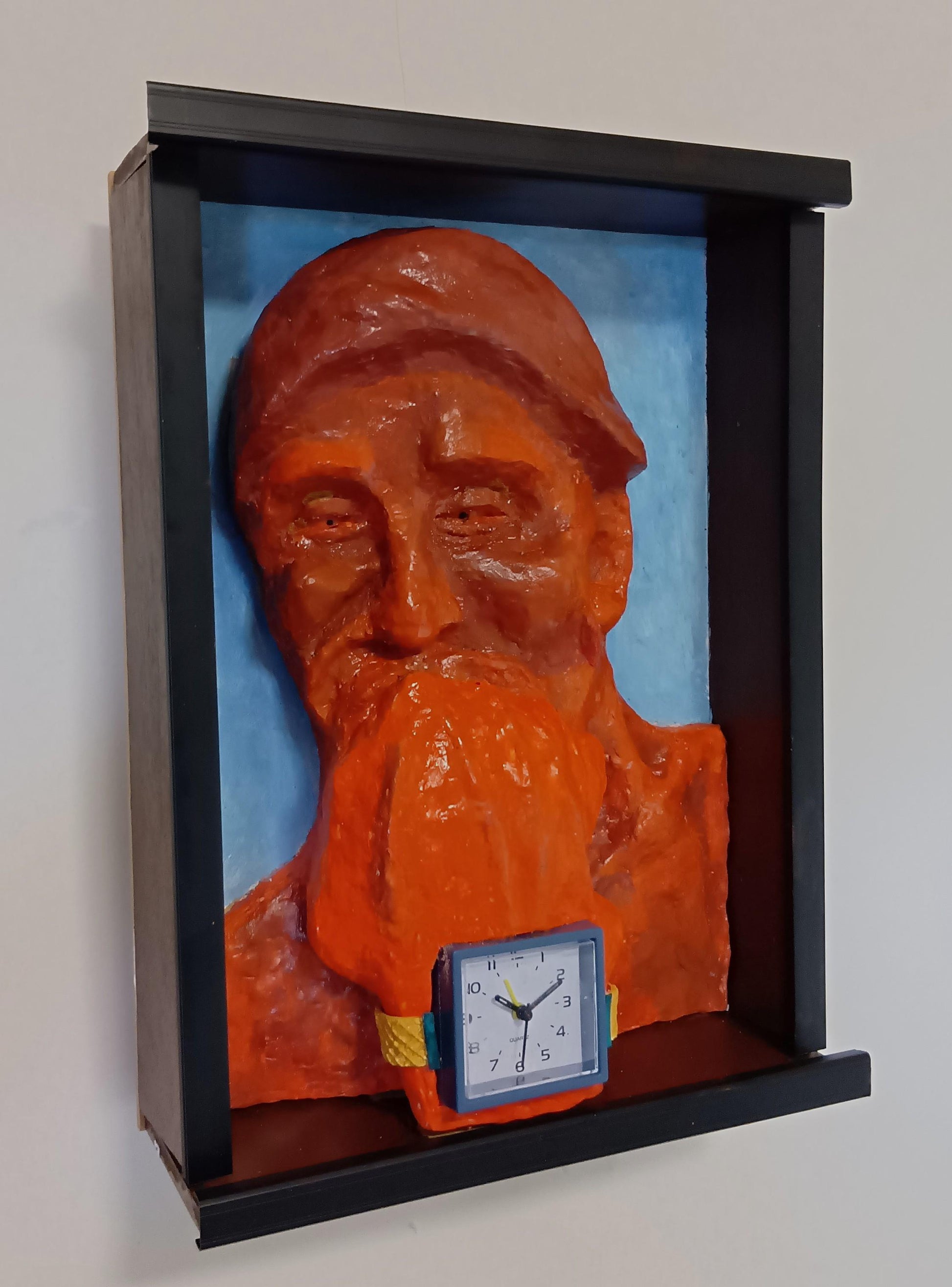 ロダン作の考える人の複製画(6枚目写真)。考える人は地獄門の上で詩想家ダンテが岩に坐り、地獄に堕ちる人を思索苦悶し熟考する姿。作品は、人生や時間を無駄しないよう人生設計や日程計画、今後の時間をあれこれ思案中。腕時計で苦悶して考えれば、優れた発想が浮上。動く本物を腕にセット。絵画が時を教えます。樹脂粘土を整形研磨、硬化と光沢の表面加工剤仕上。時計は取り出し、電池交換可能。
