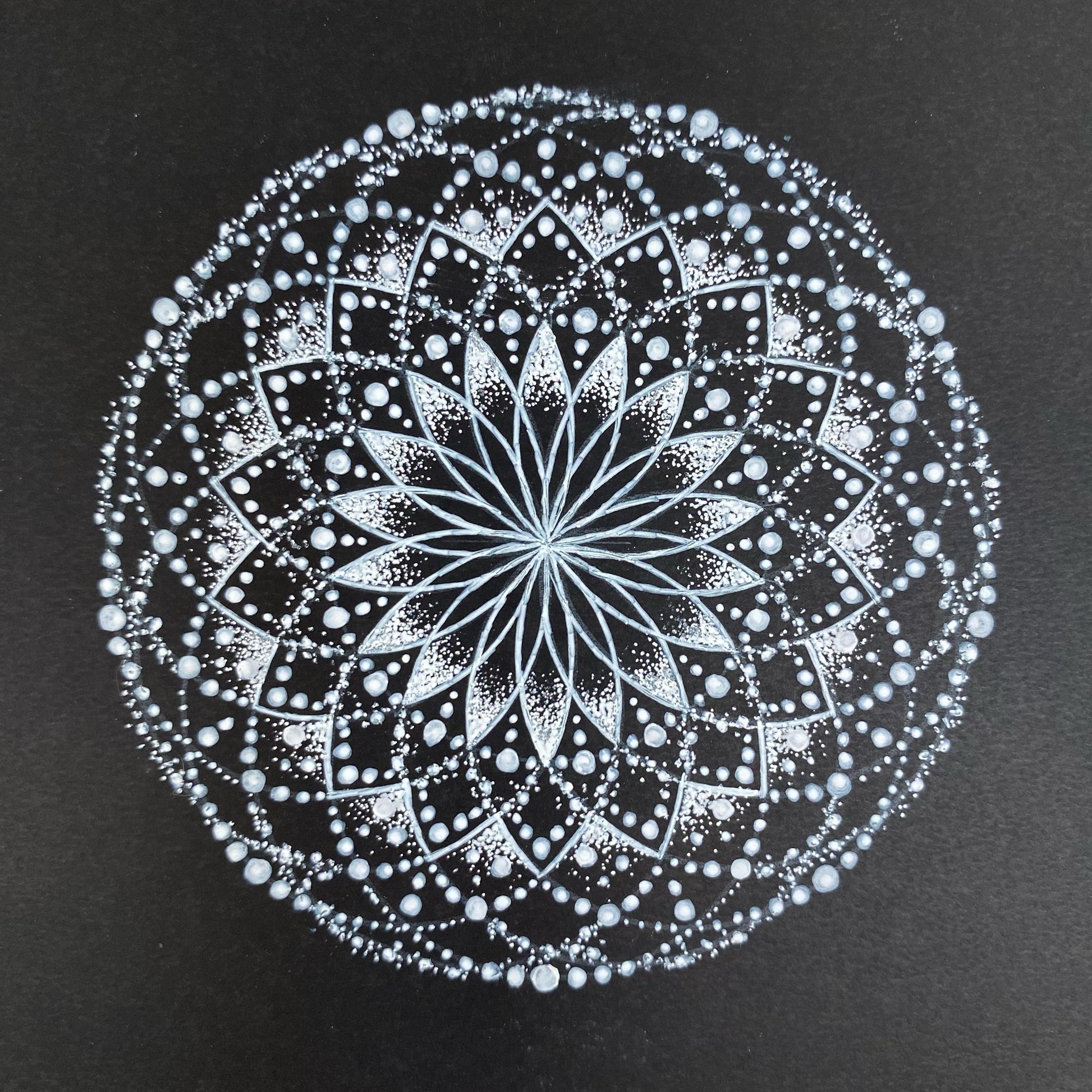 空間に飾り目にすることで、チャクラを意識し整えていく御守りのようなアートを祈りを込めて描きました。