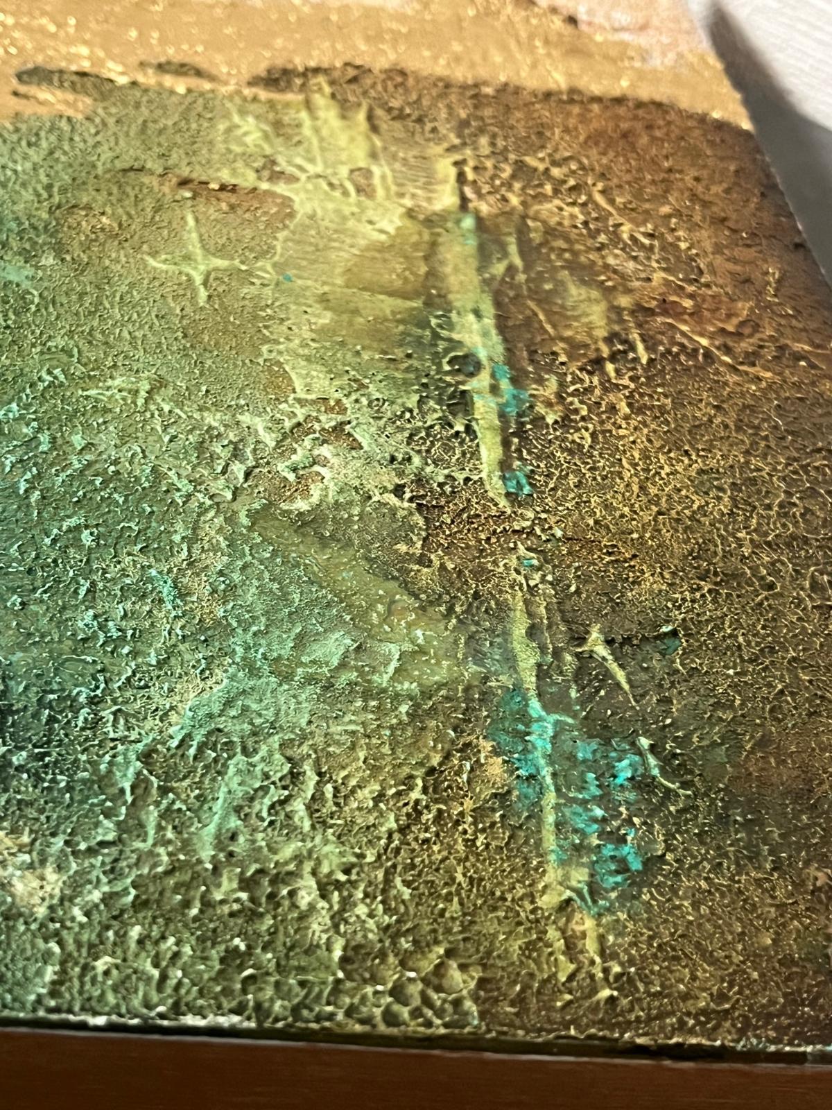 ※作品詳細 木製パネル アルコールインクアクリル モデリングペースト 珪藻土 保護スプレー 重量615g