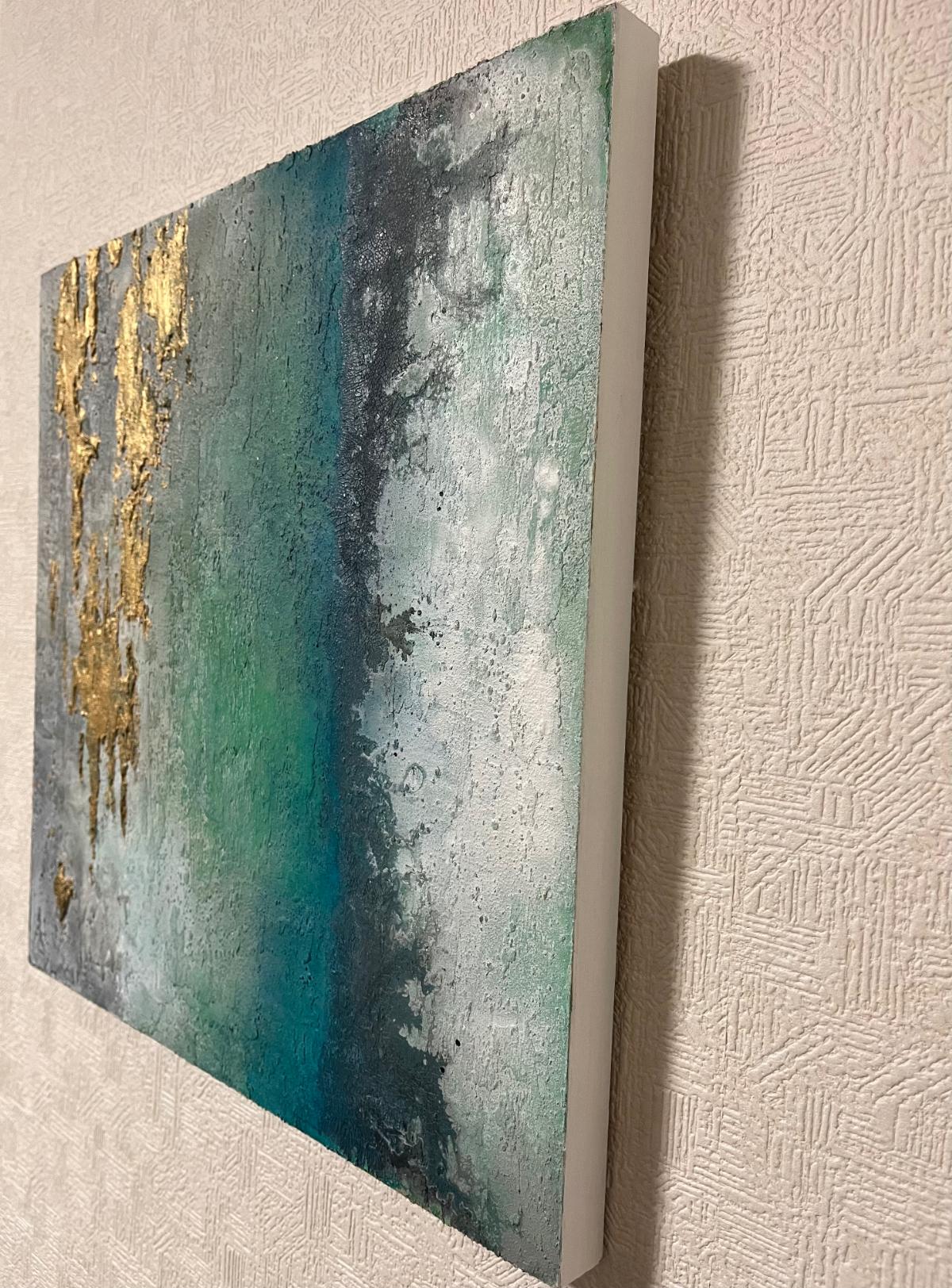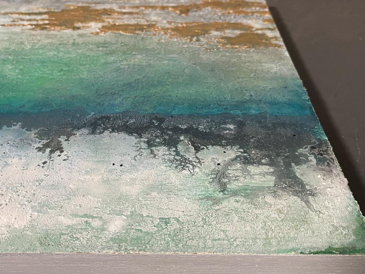 ※作品詳細 木製パネル アルコールインクアクリル モデリングペースト 珪藻土 保護スプレー 重量557g