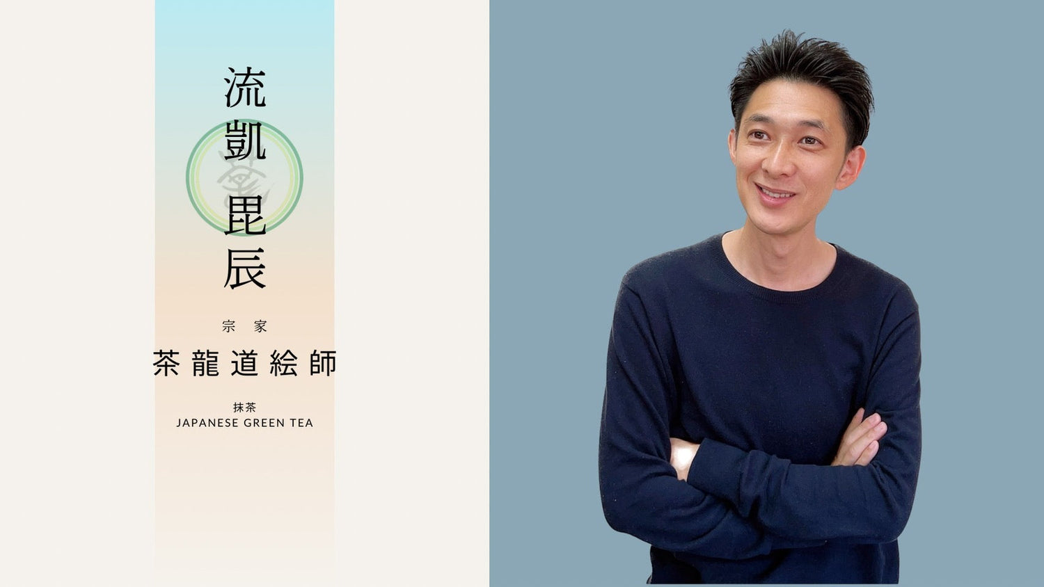 流凱 毘辰茶龍道絵師、兼カイロプラクター(D.C.)である。2021年、濃茶を墨汁に見立て龍神様を描いたことをきっかけに、抹茶を用いて絵を描く独自の技法を確立し、「茶龍道」を創立した。茶龍道のコンセプトは「生きている絵画」である。生ものである抹茶は時とともに色彩が変化し、その諸行無常の移ろいが作品の中に自然観を宿す。完成形は作者自身にも未知であり、所有する者だけがその変化と共に生きる、唯一無二の共同作品である。テーマは「我に還る」。私たちは人生の中でさまざまな価値観や固定観念に縛られ、本来の自分から乖離してしまうことがある。茶龍道の作品は、鑑賞者の心に寄り添い、固定観念を解き放ち、純粋で自由な自分自身を思い出すきっかけとなることを願う。茶の香りや色の変化までもが作品の一部であり、五感を通じた体験を提供する。絵画を所有する者が時とともに感じる変化、それ自体が「今ここを生きる」ことの尊さに気づく旅の始まりである。私の表現は、ただ美を追求するものではなく、見る者、触れる者それぞれの心の奥深くに響き、希望や自信を呼び起こすものでありたいと願う。